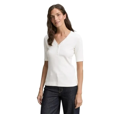 Ribbed basic T-shirt with half sleeve and half button placket Fit: regular fit, back length for size M approx. 24" Half sleeve | Henley collar Made from soft, breathable cotton with stretch content for greater freedom of movement Wash at 40 °C, iron at a moderate temperature, do not dry clean, do not bleach, do not tumble dry, wash and iron inside out, wash with similar colours, pull wet into shape