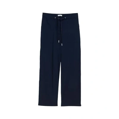 Textured culotte trousers with elastic waistband and drawstring. With patch pockets on the front and fake pockets on the back. Fit: culotte, inside leg length for size 38 approx. 68 cm Comfortable fabric trousers, ideal for leisure, birthday, office, holiday Made from a soft, textured cotton-modal blend in seersucker style Do not dry clean, do not bleach, wash at 30°C, do not tumble dry, wash inside out, do not iron, wash with similar colours, pull wet into shape