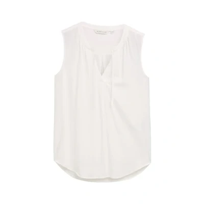 Flowing viscose tie top with ruffle collar and decorative stitching on the back Fit: regular fit, back length for size 38 approx. 70 cm With collar, sleeveless Made from a soft and flowing viscose Use mild detergent. Do not iron on decoration. Iron at low temperature. Do not dry clean. Do not bleach. Iron to maintain original fit. Do not tumble dry. Wash and iron inside out. Wash at 30°C on a delicate cycle. Wash with similar colours. Pull wet into shape