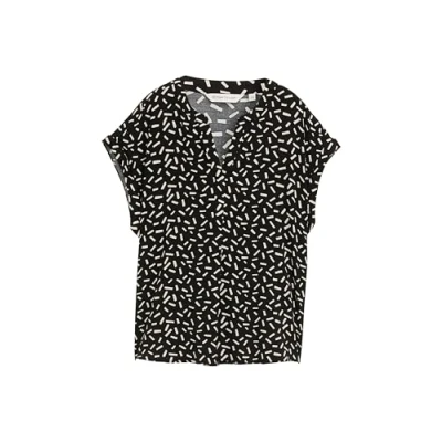 Patterned blouse made of flowing viscose with V-neck and pleat Fit: regular fit, back length for size 38 approx. 66 cm With collar, short sleeves Made from a soft and flowing viscose Use mild detergent. Do not iron on decoration. Iron at low temperature. Do not dry clean. Do not bleach. Iron to maintain original fit. Do not tumble dry. Wash and iron inside out. Wash at 30°C on a delicate cycle. Wash with similar colours. Pull wet into shape