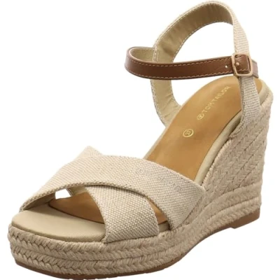 TOM TAILOR Women's 5390900013 Wedge Sandal, beige, 6.5 UK