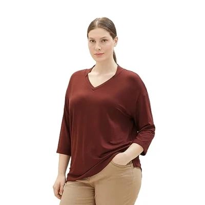 TOM TAILOR Women's Basic T Shirt with 3/4 Sleeves and V Neck, 30337 raisin, XL