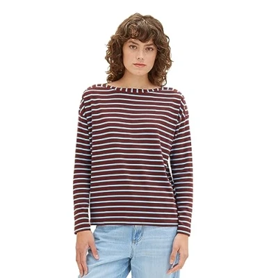 TOM TAILOR Women's Long Sleeved T Shirt, 33975 Brown Blue Stripe, XXS