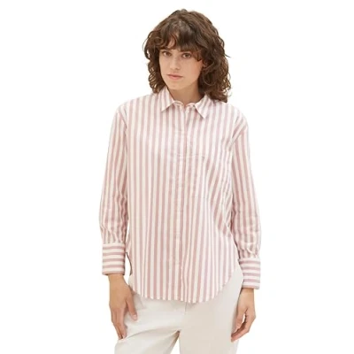 TOM TAILOR Women's Stretch Poplin Blouse with Chest Pocket, 32420 Rose Offwhite Vertical Stripe, 12