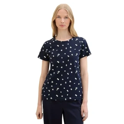 TOM TAILOR Women's Summer Cotton T Shirt, 36376 Tiny Navy Floral Design, M