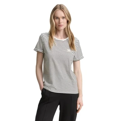 TOM TAILOR Women's T Shirt, 38148 Black White Irregular Stripe, S