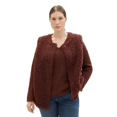 TOM TAILOR Women's Teddy Vest, 30337 raisin, 46 Große Größen