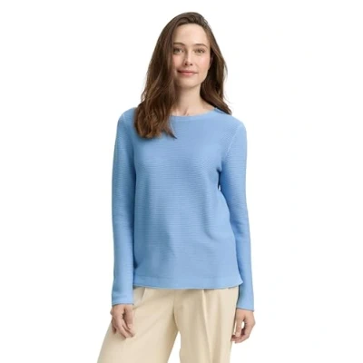 Textured ottoman sweater with lightly rolled hem edges Fit: regular fit, back length for size M approx. 24" Long sleeves with crew neck Made from sustainable organic cotton