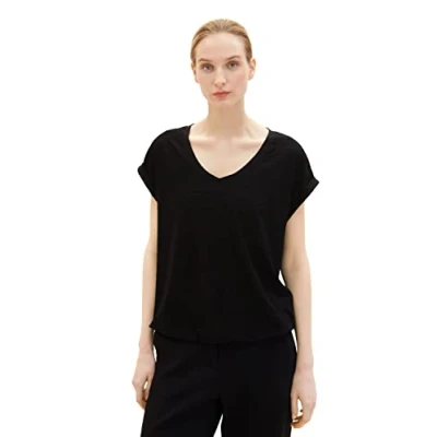 TOM TAILOR Women's 1036776 Loose fit T Shirt with Elastic Hem, 14482 Deep Black, S