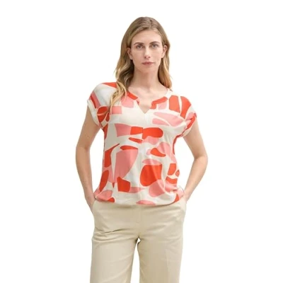 TOM TAILOR Women's 1046404 T Shirt, 37799 Red Dots and Shapes Design, XS
