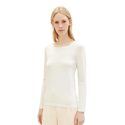 TOM TAILOR Women's Basic Long Sleeved Shirt with Ribbed Structure, 10315 whisper White, XXL