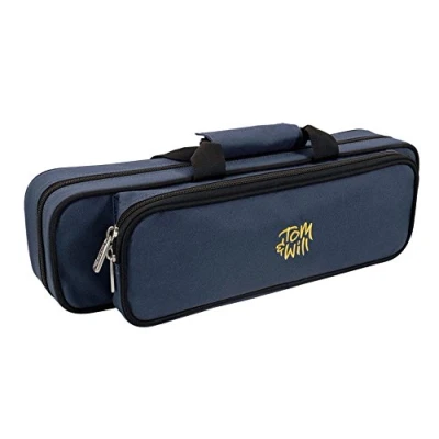 Flute case in blue canvas fabric with purple interior Moulded soft touch interior Detachable shoulder strap and main carry handle Front accessory pocket with separate section Weight 0.62kg