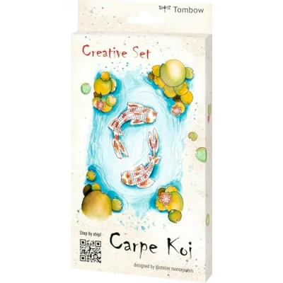 Tombow Creative Set Carpe Koi, Japan Inspired Brush Pen with ABT Dual Pen, Fineliner, A6 Aqurell Paper for Koi Drawing and Watercolour [Japan Set4]
