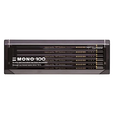 HIGH QUALITY GRAPHITE LEAD: The dark graphite lead of the MONO 100 impresses with its high density and offers intense contrast. Perfect for precise writing and artistic drawing. ELEGANT LACQUER FINISH: The black pencil is characterised by a fine, glossy lacquer finish that not only looks elegant, but also ensures a pleasant writing experience. PRACTICAL PACKAGING: The set contains 12 high-quality, unsharpened pencils, which are supplied in a sturdy and elegant acrylic box. Perfect for safe storage and easy handling. VERSATILE DEGREES OF HARDNESS: The MONO 100 is available in 17 different degrees of hardness - from extremely hard to very soft. It therefore offers the perfect choice for every artistic or technical requirement. CONSTANCY AND TRADITION: Tombow is a Japanese family business that manufactures high-quality and reliable writing instruments to support creative people in their work.