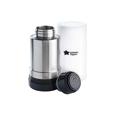 CurrysWarm up your baby's milk and food on the go with the Tommee Tippee Travel Bottle & Food Warmer. You won't need batteries or a socket - the thermal flask keeps water hot all day. When you want to warm up your little one's snack, just pour it into the upturned lid, pop a bottle or jar in and you're ready to feed. As the thermal flask sits conveniently in the lid used to warm up your bottles, it's as compact as it gets.