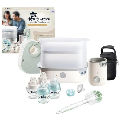 AmazonNatural Start and Advanced Anti-Colic Bottles: Essential for parent with newborns, this kit comes with 2 x Natural Start bottles and 2 x Advanced Anti-Colic bottles so you can decide which works best for you and baby Electric Steam Steriliser: Sterilise up to six bottles in just five minutes without the use of chemicals to protect baby from harmful germs Breast-like and Ultra-light Soothers: The Tommee Tippee breast-like soother is shaped like a nipple for a natural latch while the ultra-light is our lightest soother ever, designed to stay put in baby’s mouth Easiwarm Bottle Warmer: Gently warm baby’s feed to body temperature for a comfortable and natural feeding experience Insulated Bottle Bag: Designed for life on-the-go, the portable, insulated bottle bag keeps water at the right temperature, hot or cold, for a perfect feed, anytime, anywhere