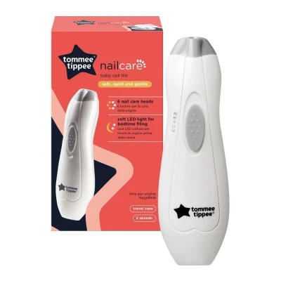 Currys- This Tommee Tippee electric nail file is quiet, gentle, and simple to use, even when your little one wriggles- With six filing heads for babies and adults, it's a useful kit for the whole family- The one-button control makes it easy to switch between speed and direction- The built-in LED light helps you see clearly, so you can file with confidence- It's compact, comes with a carry case, and is just as handy at home as it is when you're out and about