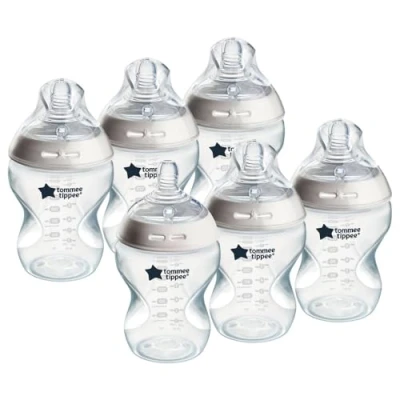 Tommee Tippee Natural Start Baby Bottles for 0m+, Pack of 6 260ml Bottles, with Slow Flow Breast Like Teat a Latch, Self Sterilising and BPA Free, Feeding Essentials