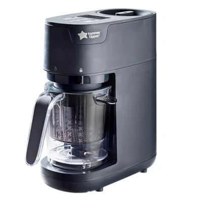 Simplify your little one's meal prep with this Tommee Tippee 6-in-1 baby food maker. Steam, blend, chop, reheat, defrost and sterilise at the touch of a button. It can handle different textures, from smooth purées to chunky bites, all while preserving nutrients and flavour. Perfect for weaning your baby on to solid foods. The large 500 ml blending jug lets you prepare fresh portions quickly. And the QuickCook function makes it easy to batch cook multiple meals for the week ahead.Good to know- The jug, lid and basket are dishwasher safe for a fuss-free cleanup- You can store prepared meals in the included weaning pots for convenience- The weaning spoon has a soft tip so it's safe for your baby's delicate mouth