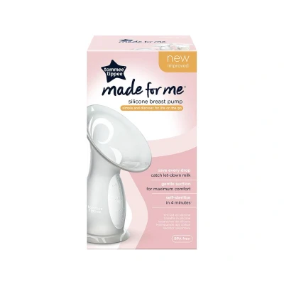 Express comfortably with the Tommee Tippee Made for Me Silicone Manual Breast Pump.With the suction base and single-use milk pouch, you won't spill a drop.This pump is compact, lightweight and quiet, so you can use it anywhere. The soft cushioned silicone cup is comfortable to use.It's dishwasher safe and you can store it in a reusable travel and microwave steriliser bag, so germs have no chance.