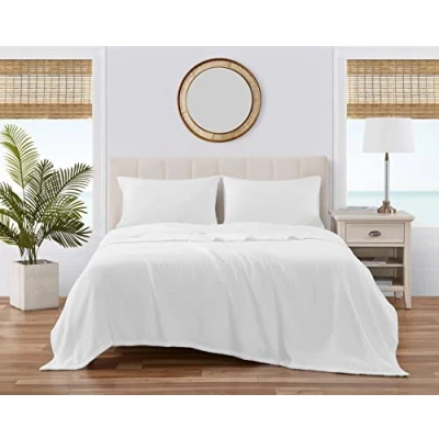 100% Soft Cotton Construction Includes: One blanket (90"L x 108"W) Features unique basketweave design Perfect layering piece for your bedding ensemble Machine washable for easy care