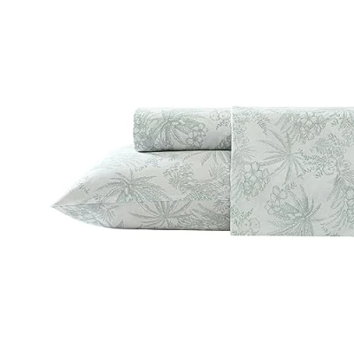 Tommy Bahama King Sheets, Cotton Percale Bedding Set, Crisp & Cool, Stylish Home Decor (Pen and Ink Palm Green, King)