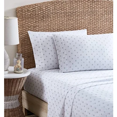 Tommy Bahama King Sheets, Cotton Percale Bedding Set, Crisp & Cool, Stylish Home Decor (Starfish Treasure Grey, King)