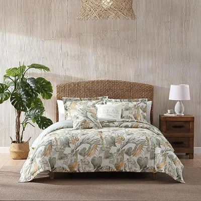 Tommy Bahama Queen Duvet Cover Set, Soft Cotton Bedding with Matching Shams, Tropical Home Decor Solid Reverse (Raw Coast Green, Queen)