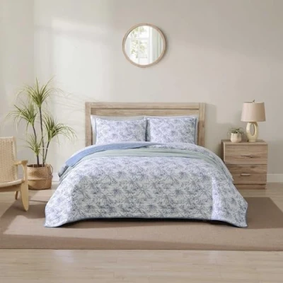 Tommy Bahama Queen Quilt Set, Reversible Cotton Bedding with Matching Shams, Coastal Inspired Home Decor (Pen and Ink Palm Navy Blue, Queen)