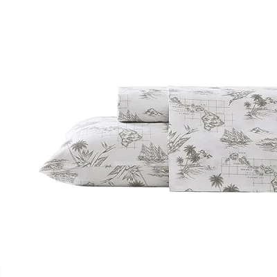 Tommy Bahama Queen Sheets, Cotton Percale Bedding Set, Crisp & Cool, Stylish Home Decor (Vintage Map Brown, Queen)