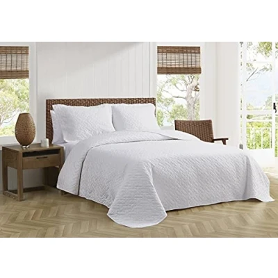 Tommy Bahama Quilt Set 100, Lightweight, All Season Bedding, Pre Washed for Added Softness, Cotton, White, King