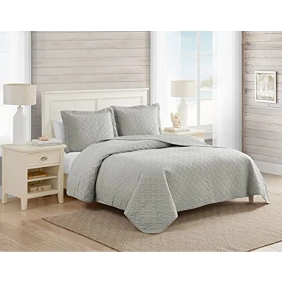 Tommy Bahama Quilt Set, Cotton, Pelican Gray, Twin