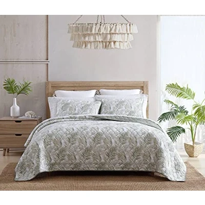 Tommy Bahama Reversible Cotton Bedding with Matching Shams, Soft Coastal Bedspread, All Season Home Decor, Green, Queen