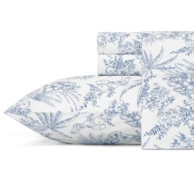 Tommy Bahama Sheet Set 100, Crisp & Cool, Lightweight Moisture Wicking Bedding, Cotton, Pen and Ink Palm Blue, King