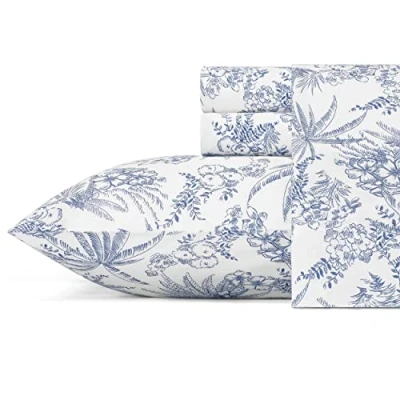 TOMMY BAHAMA HOME: Expertly crafted bedding collections inspired by island living. Our products blend relaxed elegance with exceptional comfort, bringing a touch of tropical paradise into your home. Embrace the spirit of the islands with versatile and stylish pieces that transform your living space into a serene retreat every day. QUALITY: Our cotton percale sheet sets are smooth and structured—like a crisp button-down shirt. Woven from 100% long-staple cotton, this breathable fabric offers a cool, fresh feel and a classic, lived-in look without the need for ironing. Naturally gentle and free from harsh chemicals, percale is ideal for those who prefer clean, breathable comfort. EASY CARE: To get the longest life out of our cotton percale sheet set, machine wash cold with like colors on a gentle cycle. Tumble dry on low heat. Avoid bleach and fabric softeners to preserve fabric integrity. Warm iron as needed for a crisp finish. SET INCLUDES: (1) Full/Queen Flat Sheet- 102"L x 90"W, (1) Elasticized Fitted Sheet- 80"L x 60"W, (2) Standard Pillowcases- 20"L x 30"W; Deep Pocket- 15" fitted sheet pocket depth which fits mattress up to 18" EXPLORE MORE COLLECTIONS: Discover the full assortment of bedding and home decor in our Brand Store—curated for timeless style and everyday comfort.