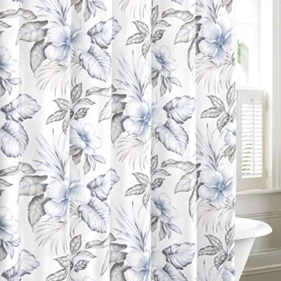 Includes: One shower curtain (72"L x 72"W) Features finely drawn botanical details of hibiscus flowers and variegated leaves Liner and hooks not included 100% Cotton Machine washable for easy care