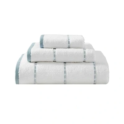 MATERIAL: 100% Cotton Construction- Premium cotton fibers SET INCLUDES: One bath towel, one hand towel and one washcloth FEATURES: Highly absorbent, low linting, and fade resistant; Lofty for maximum absorbency DIMENSIONS: Bath Towel- 54"L x 30"W, Hand Towel- 30"L x 16"W, Washcloth- 13"L x 13"W CARE: Machine wash cold, tumble dry low