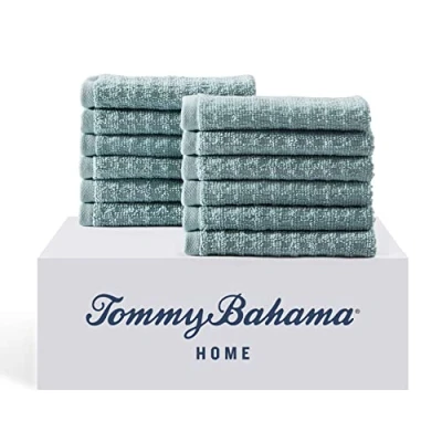 Tommy Bahama Washcloth Set, Highly Absorbent Cotton Bathroom Decor, Low Linting & Fade Resistant, Oeko Tex Certified (Northern Pacific Turquoise, 12 Piece)