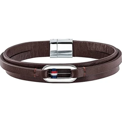 Tommy Hilfiger 32000627 Men's Bracelet Stainless Steel and Leather, one size, steel, leather