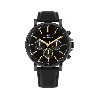 Tommy Hilfiger Analogue Multifunction Quartz Watch for Men with Black Leather Strap 1792144