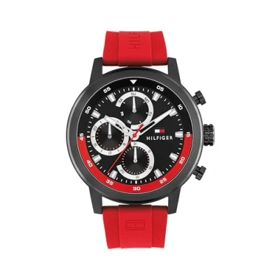 Tommy Hilfiger Analogue Multifunction Quartz Watch for Men with Red Silicone Bracelet 1792178