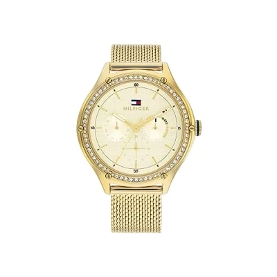 Tommy Hilfiger Analogue Multifunction Quartz Watch for Women with Gold Colored Stainless Steel Mesh Bracelet 1782655