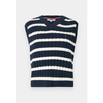 Make preppy layering effortless with this pure cotton sweater vest, featuring a traditional cable design in a luxe midgauge knit.Highlights• Pure cotton• Allover cable knit• Mid gauge• Vneck• Ribknit collar, armholes and hem• Signature detailing inside neckline• Tommy Hilfiger branding• Tommy Hilfiger flag embroidery on chestshape & fit• Regular fitcomposition & care• 100% cotton Sale | Outer fabric material: 100% cotton | Sale order at Zalando UK! Size: Medium. Color: Dark night navy/ivory petal. Pattern: striped.