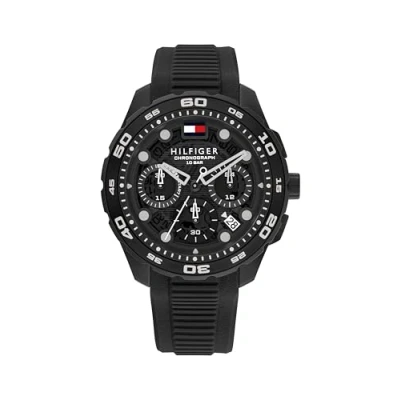 Tommy Hilfiger Chronograph Quartz Watch with Calendar for Men Black Silicone Bracelet 1792233