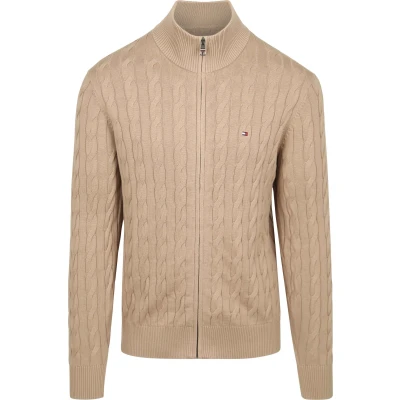 Tommy Hilfiger Cardigan Zip Cable Beige Tommy Hilfiger Cardigan Zip Cable Beige in the color Beige with a fit Regular-Fit is made from Cotton with a Plain design and Long sleeves.