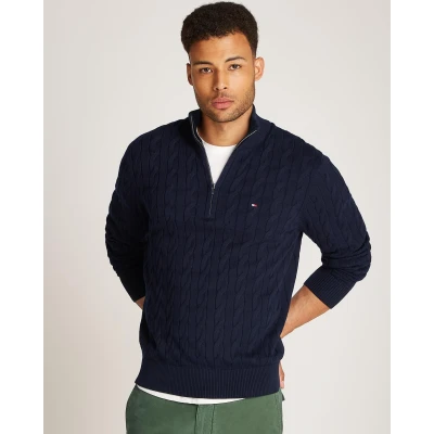 Tommy Hilfiger Classic Cotton Cable Mens Half Zip Mock Sweatshirt Navy Size X Large