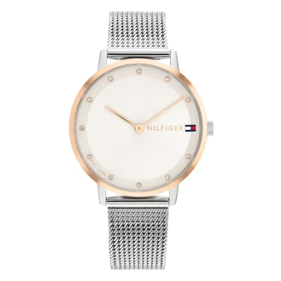 Graceful 2-Hands Quartz Movement: Embrace the essence of grace and femininity with the enchanting 2-hands quartz movement of this watch. The delicate dance of the hour and minute hands adds a touch of elegance to every moment, capturing the timeless beauty that complements the wrist of the modern, sophisticated woman. Case thickness 6.20mm / Case Diameter 35mm Casual Chic with Carnation gold Sunray Dial and Crystal Indexes: Embrace a laid-back vibe with this women's watch featuring a relaxed carnation gold sunray dial adorned with sparkling crystal indexes. Tommy Hilfiger branding elements effortlessly complement the dial, adding a touch of easygoing glamour. 316L Stainless Steel Mesh Bracelet: Delicately crafted for elegance and durability, this women's watch showcases a meticulously designed 316L stainless steel mesh bracelet. The perfect blend of style and strength for a refined wristwear experience. Water Resistance: 3ATM Faucet spray or rain won’t hurt them as long as the case, crown and crystal remain intact.