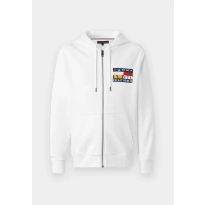 Tommy Hilfiger Colour FLAG ZIP Through Zipup sweatshirt, Men's, Size: Medium, White
