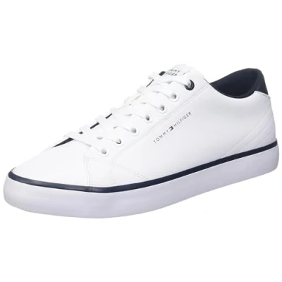 PREMIUM DESIGN: These contrast detail trainers impress with their stylish design and premium material. The Tommy Hilfiger branding adds the final touch to the shoe. OPTIMAL FIT: These original Tommy Hilfiger lace-up trainers don't just look great – they also fit your feet perfectly. FOR EVERY OCCASION: These stylish trainers work just as well with elegant looks as they do with your everyday outfits. The premium quality material means they're comfortable to wear all day long. PREMIUM MATERIAL: The upper is 50% recycled leather, 20% recycled polyester, 15% polyester and 15% polyurethane. PROVEN QUALITY: The designer brand has been captivating the global fashion industry with its high-quality and lightweight designs in a wide range of styles in its famous dark blue, white and red colours since 1985.