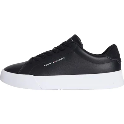 PREMIUM DESIGN: These elegant trainers impress with their stylish design and premium leather. The stylish Tommy Hilfiger flag on the side adds the final touch to the shoe. OPTIMAL FIT: These original Tommy Hilfiger lace-up trainers don't just look great – they also fit your feet perfectly. FOR EVERY OCCASION: The stylish trainers go well with your everyday wear, but can also be paired with elegant attire for special occasions. The high-quality material ensures a comfortable feel all day long. PREMIUM MATERIAL: The upper is 80% leather and 20% polyurethane. PROVEN QUALITY: The designer brand has been captivating the global fashion industry with its high-quality and lightweight designs in a wide range of styles in its famous dark blue, white and red colours since 1985.
